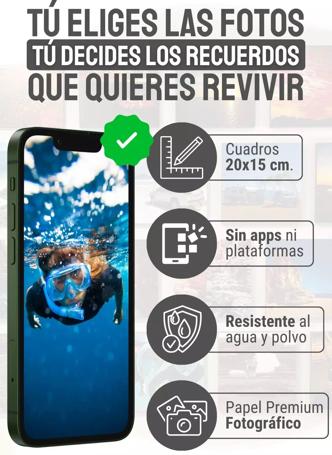 🖼️ Calidad premium: Impresos en papel fotográfico resistente al agua y polvo.